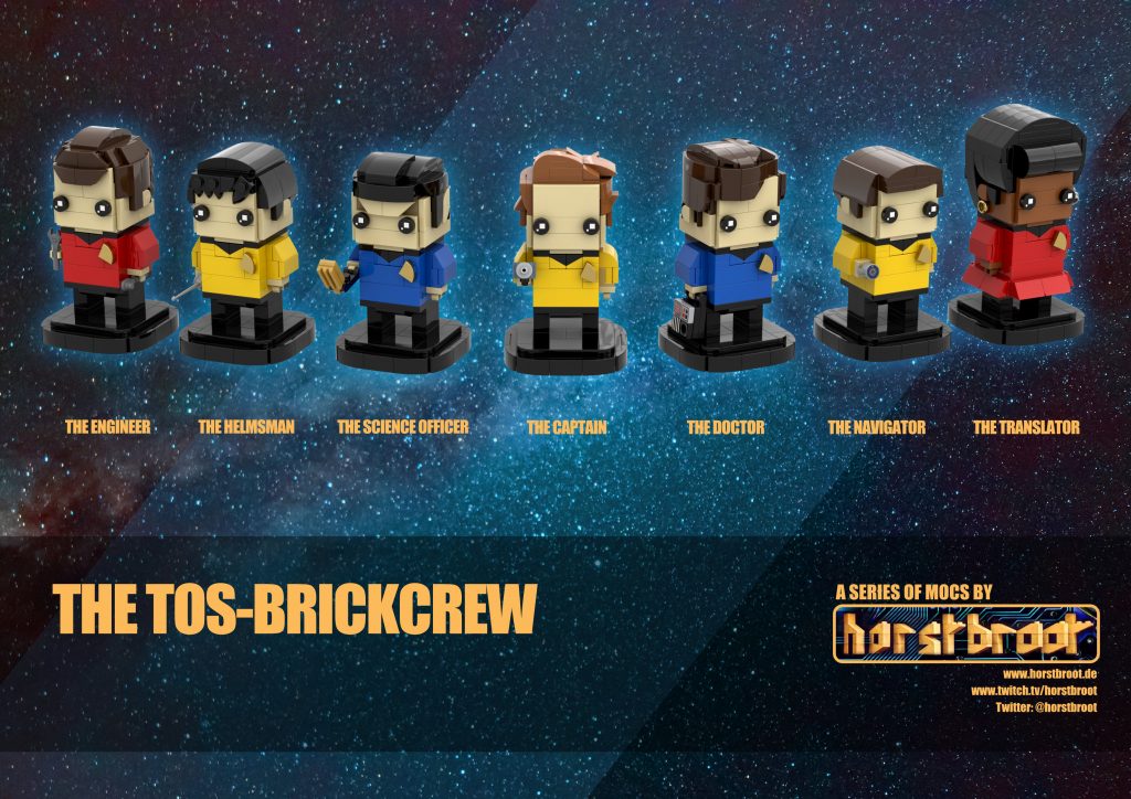 Die TOS Brickcrew ist eine Reihe von insgesamt sieben MOCs. Ich brauchte dringend etwas, was ich zu meiner großen Enterprise von BlueBrixx stellen kann, damit sie nicht so alleine da steht. Also schnell Bricklink Studio angeschmissen und losgelegt. Herausgekommen ist eine Crew angelehnt an die berühmten Serienhelden aus den späten 60ern. Die Anleitungen lade ich nach und nach auf Rebrickable.com hoch. Zu jeder Figur mache ich hier einen kleinen Beitrag, der auch einen Link zur jeweiligen Rebrickable-Seite enthält.